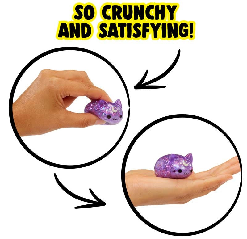 The Original Moj Moj Crunch features one adorable character filled with unique textures like sand, beads, glitter, or foam, offering a fun and satisfying sensory experience. Each mystery package keeps the excitement going, as you won't know which character you’ll get until you open it - can you find the rare or ultra-rare characters? These soft, stretchy squishy toys are perfect for pressing, squeezing, and stretching providing a calming tactile sensation that’s ideal for stress and anxiety relief.